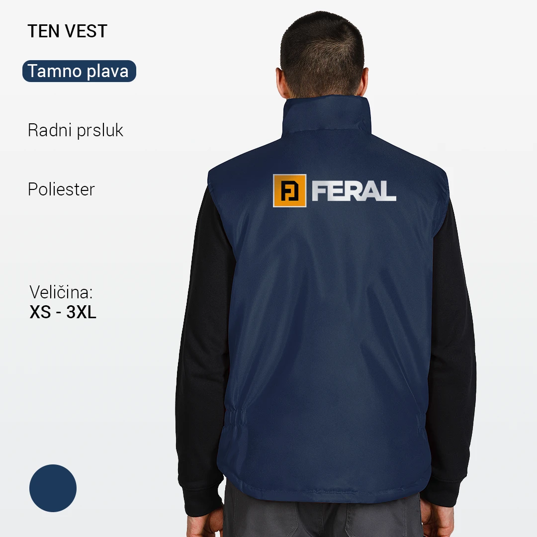 Radni prsluk TEN razvijen je kao funkcionalni deo radne opreme za profesionalnu upotrebu u industrijskim, logističkim i servisnim okruženjima. Izrađen je od 100% poliestera, kako u spoljašnjem sloju tako i u unutrašnjoj postavi, čime se obezbeđuju otpornost na habanje i stabilnost tokom svakodnevnog korišćenja.