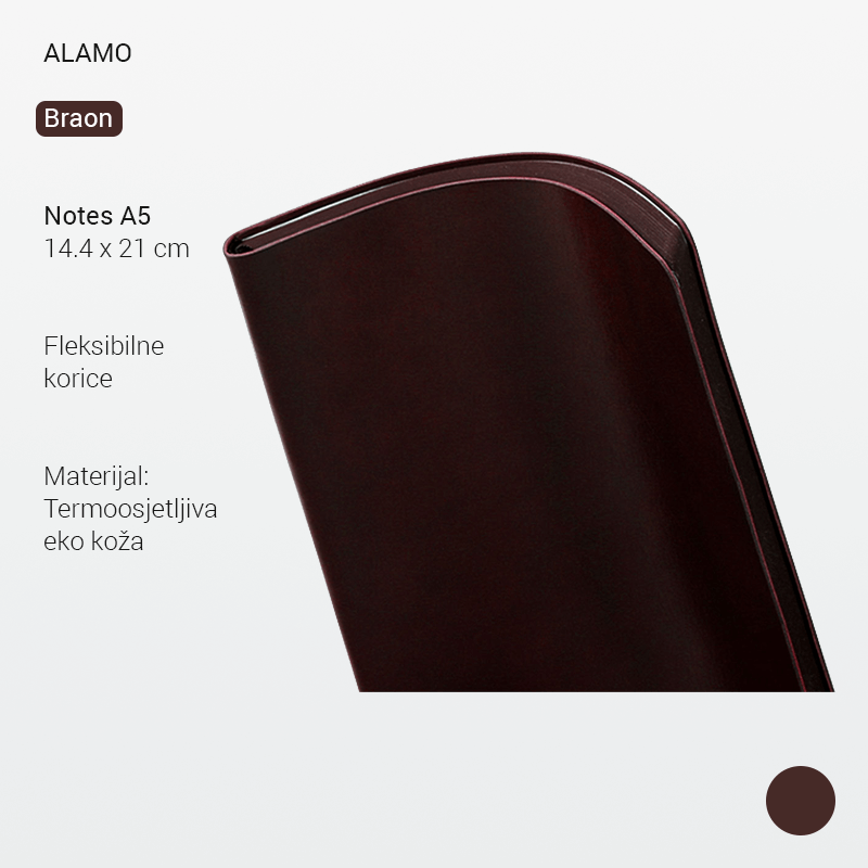 Notes sa fleksibilnom koricom, zaobljenim ivicama i bojenom ivicom knjižnog bloka u boji korice.